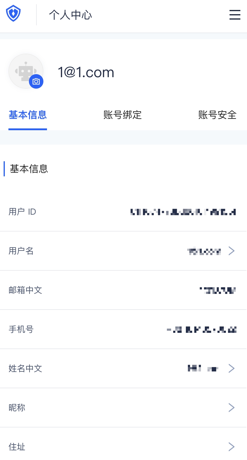 用户选择敏感信息并同意授权后,即可完成登录;同时,你所勾选的信息将会同步至 Authing,图示为用户个人中心获取到的用户信息。