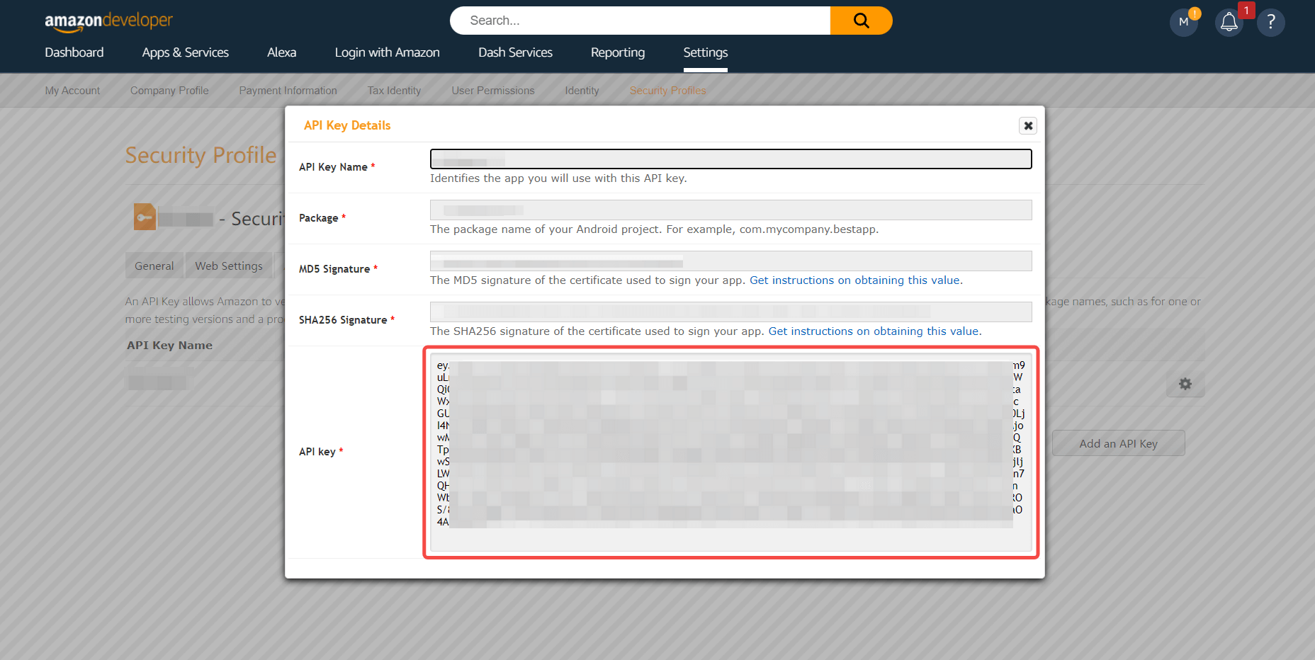 | API 密钥 (安卓) | 亚马逊的「安全配置文件」 - 「Android 设置」的 API Key,需要在 亚马逊 开放平台 上获取。 |