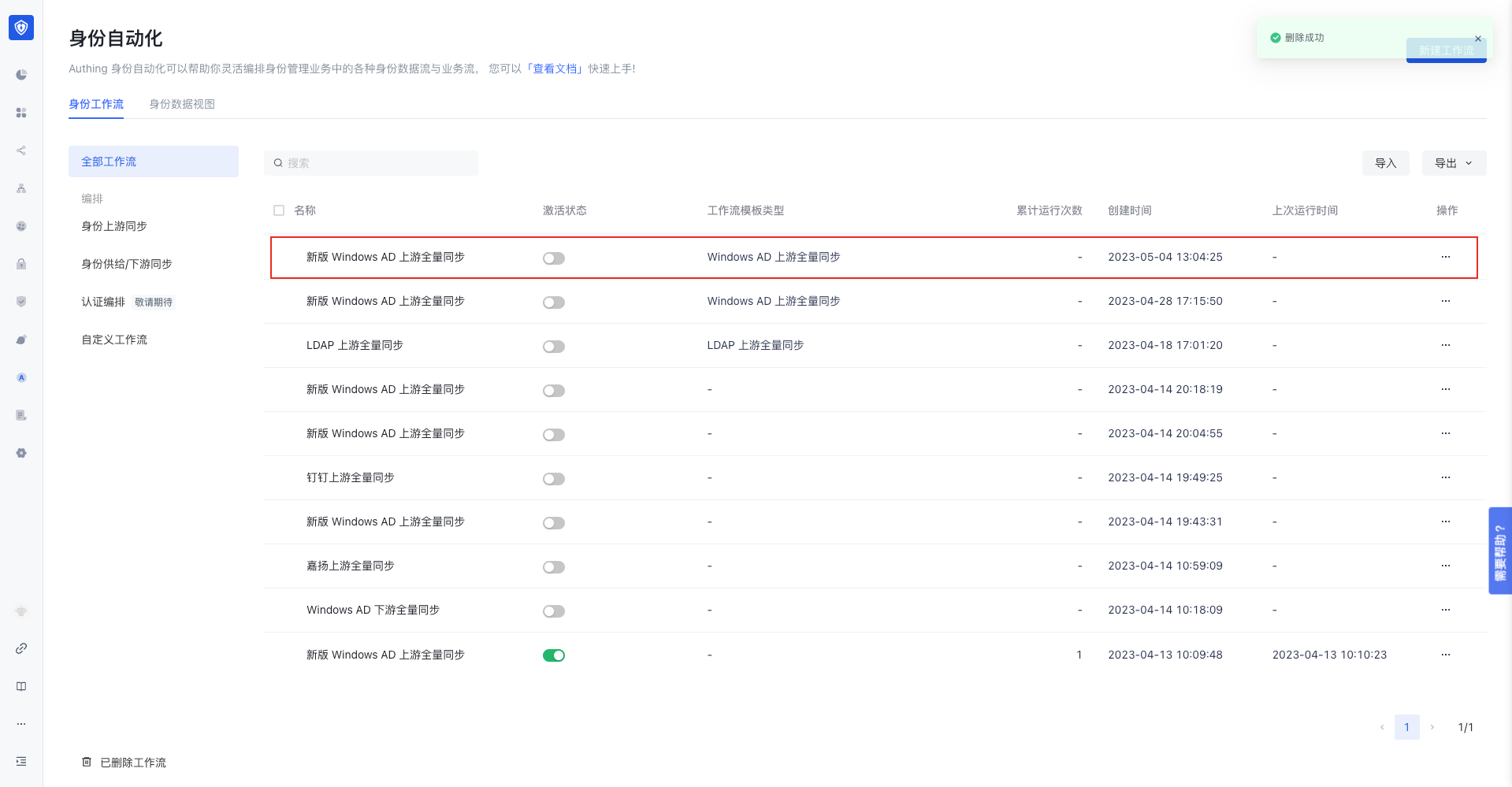 - 进入身份自动化中,选择要发布为工作流模板的工作流。