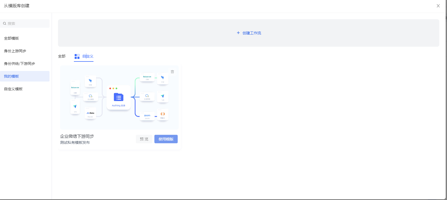 - 联系管理员获取工作流模板发布权限( 以用户池 ID 为维度)。