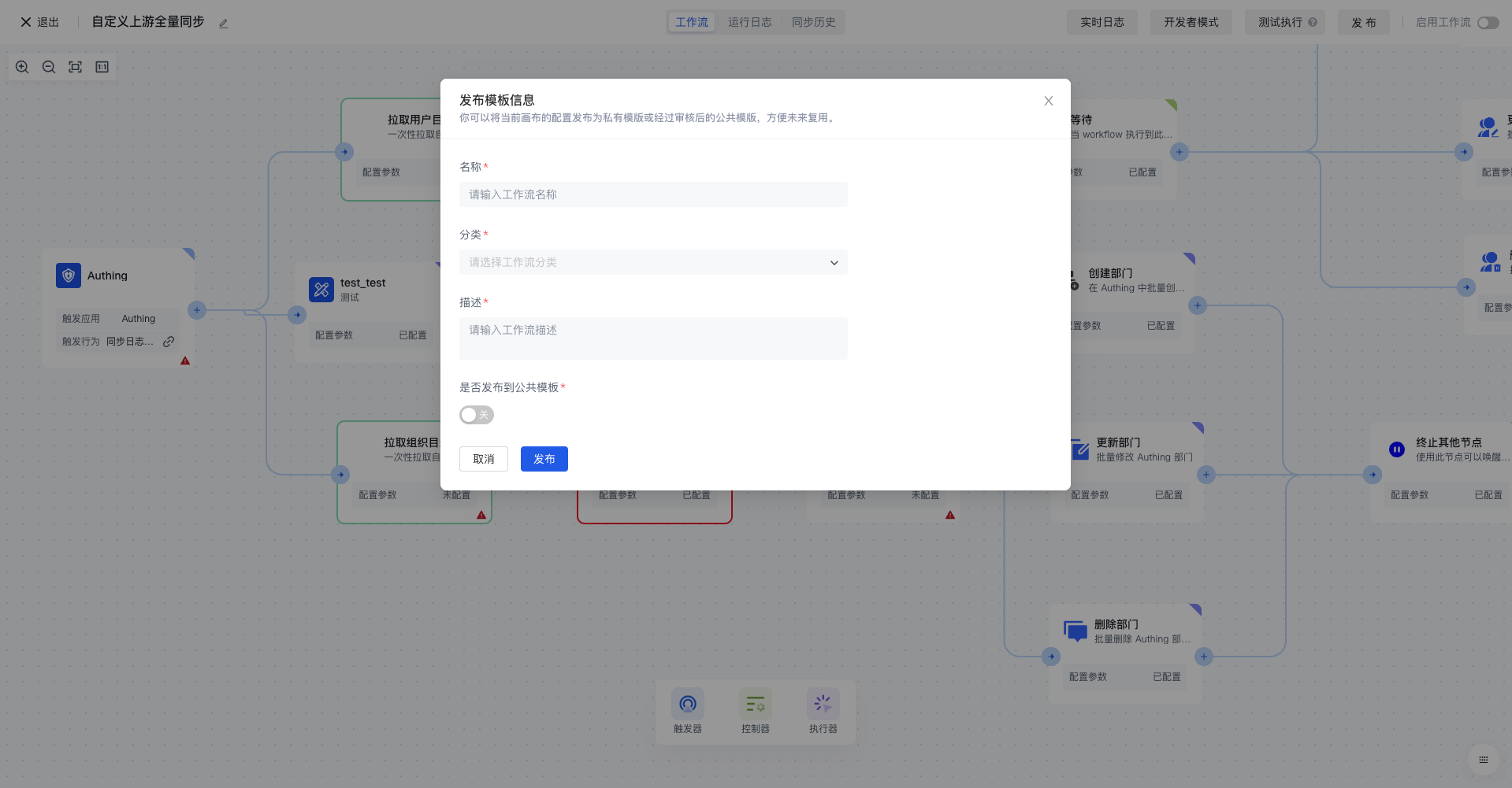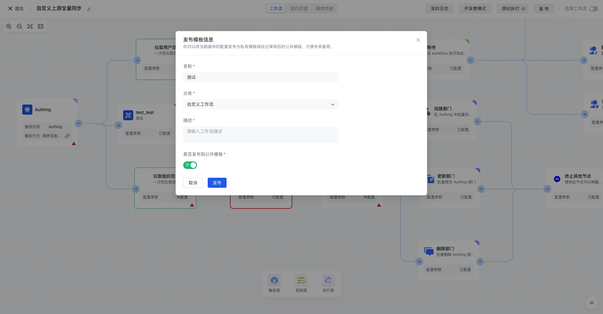 当前仅支持发布到自定义工作流模板
