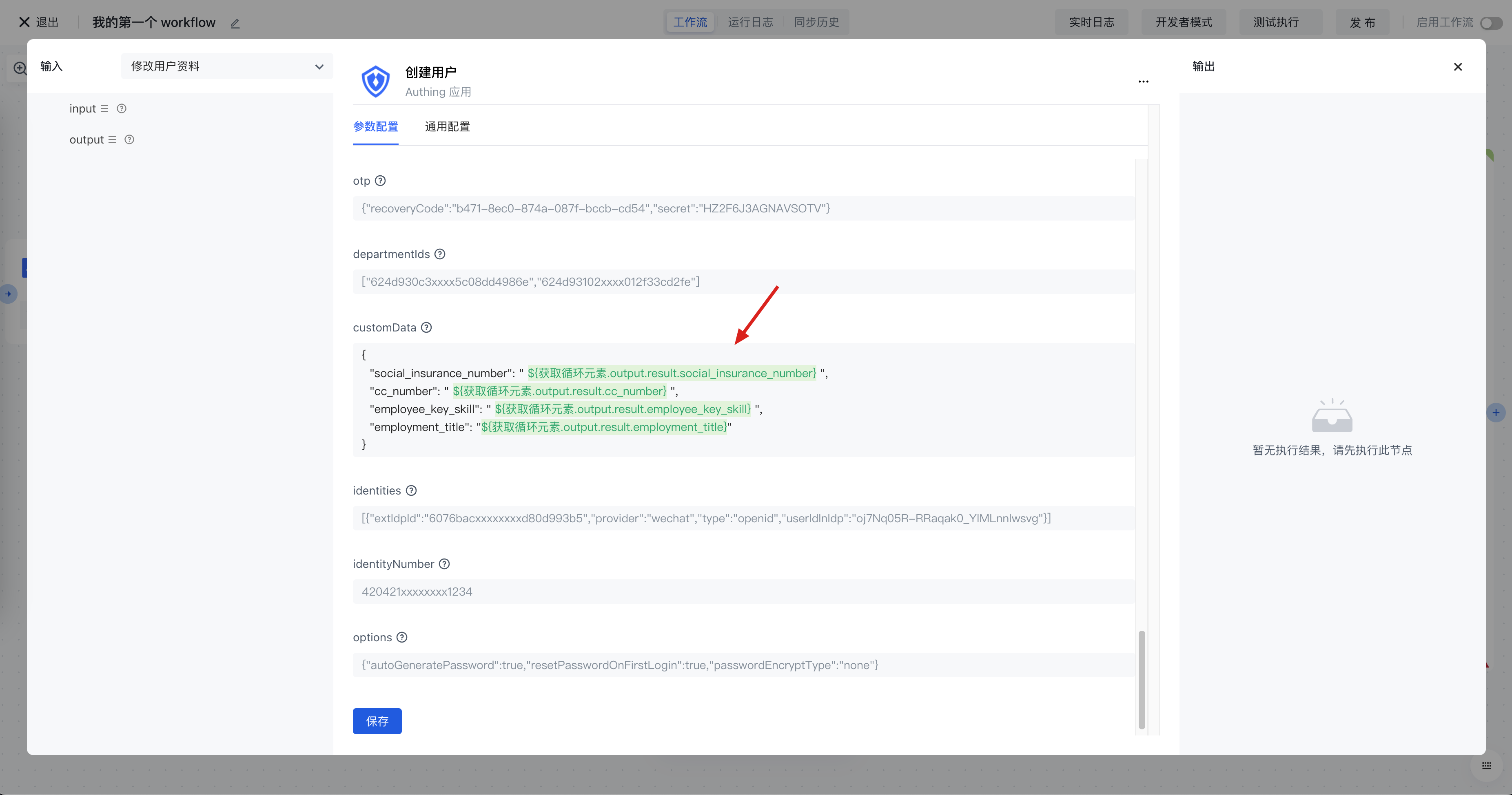 • 编写「创建用户」和「更新用户资料」节点配置