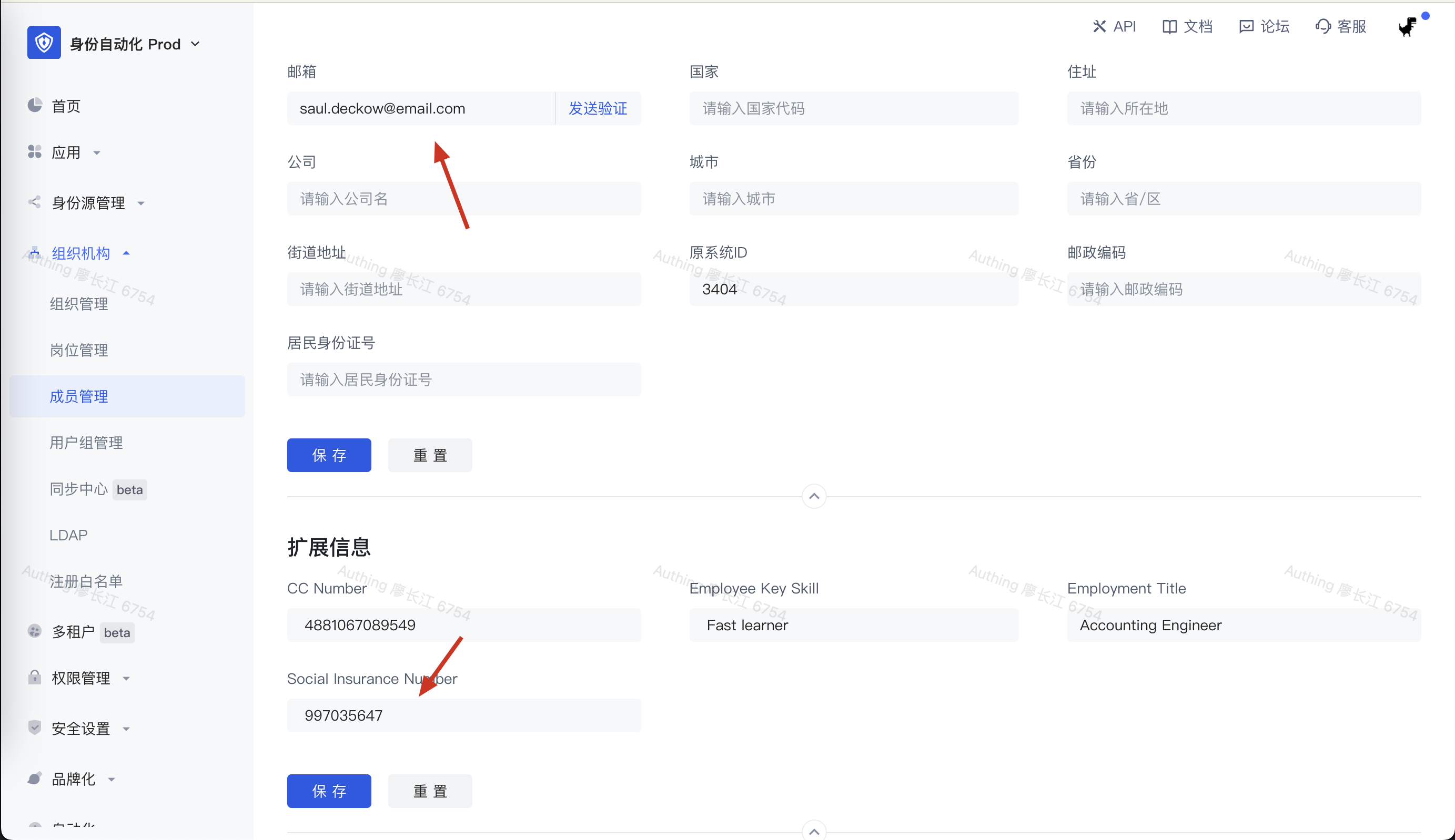 我们选择其中一个用户,用他自定义字段中的 social_insurance_number 后 6 位作为密码尝试登录一下:
