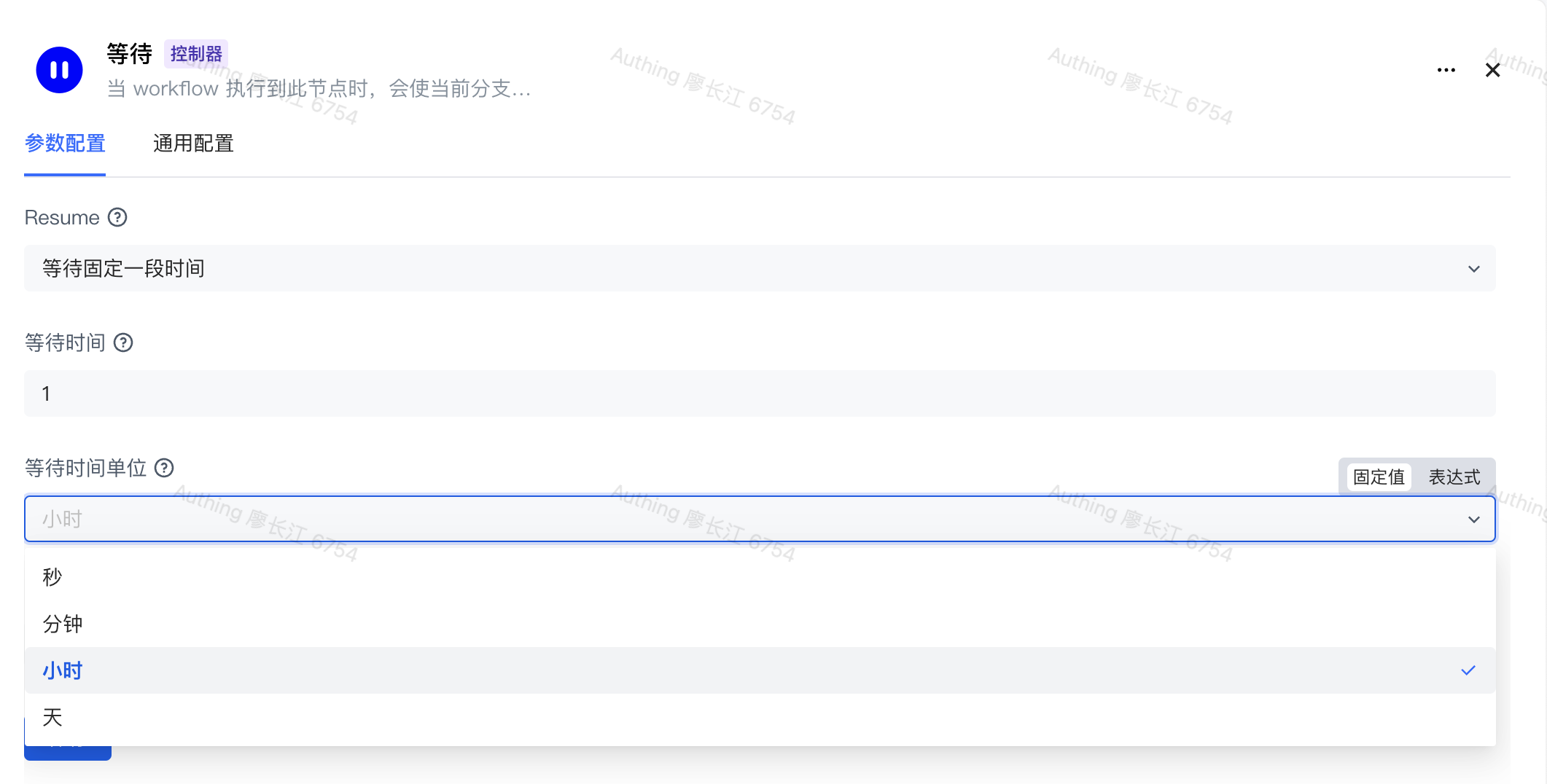 支持秒、分钟、小时、天为单位,当等待时间达到一定时间之后,恢复流程执行。